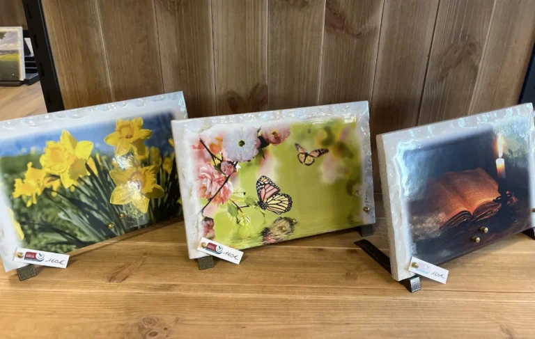 En granit, en plexiglas, sobres ou personnalisées avec un prénom, une date, un message.